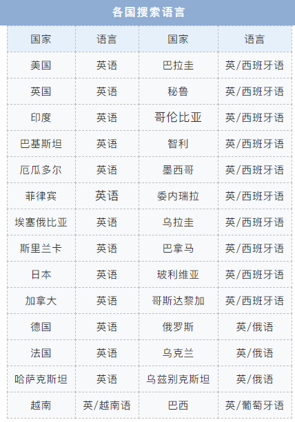 1)搜索产品和采购商(进口商)时,应使用对应国家的官方语言