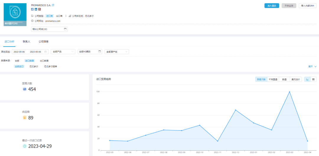 4、可给予官方企业信息和联系方式,主要包括公司创建时间、具体地址、公司状态、联系人、联系人职务、邮箱、电话等关键信息,且信息每次随数据更新而同步更新,及时有效,为PA真人国际客户随时掌握厄瓜多尔市场客户最新状态和直接联系优质客户给予了有力支持。