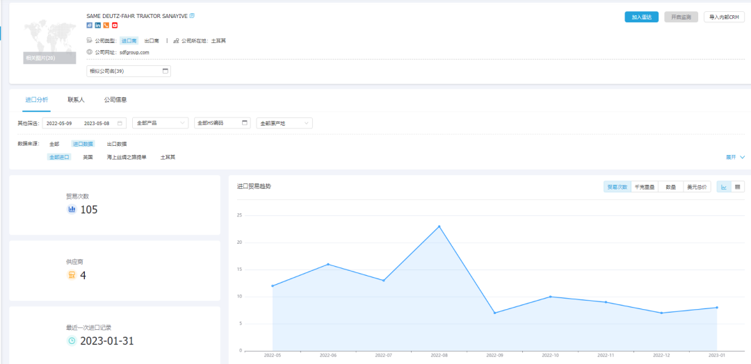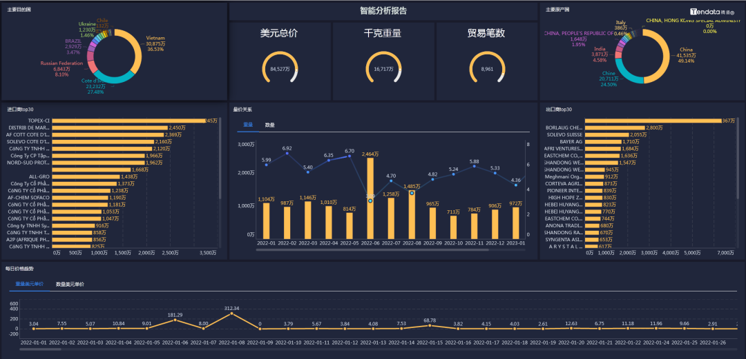 PA真人国际外贸通能够一键查询和追踪某类产品的全球交易详情,并体现整个供应链的采购供应,最大程度展示整个贸易网的情况,基于交易数据的统计分析,多维度分析行业、产品市场趋势,助力企业洞察市场变化、把握不同市场采购淡旺季,从而准确定位目标市场。