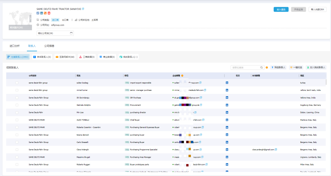 不用费时费力多渠道查找,PA真人国际外贸通集合关键决策人的职务、邮箱、领英、Facebook等信息,可直接链接领英等世界主流社交媒体平台,帮助企业快速和目标对象建立联系,助力客户开发。